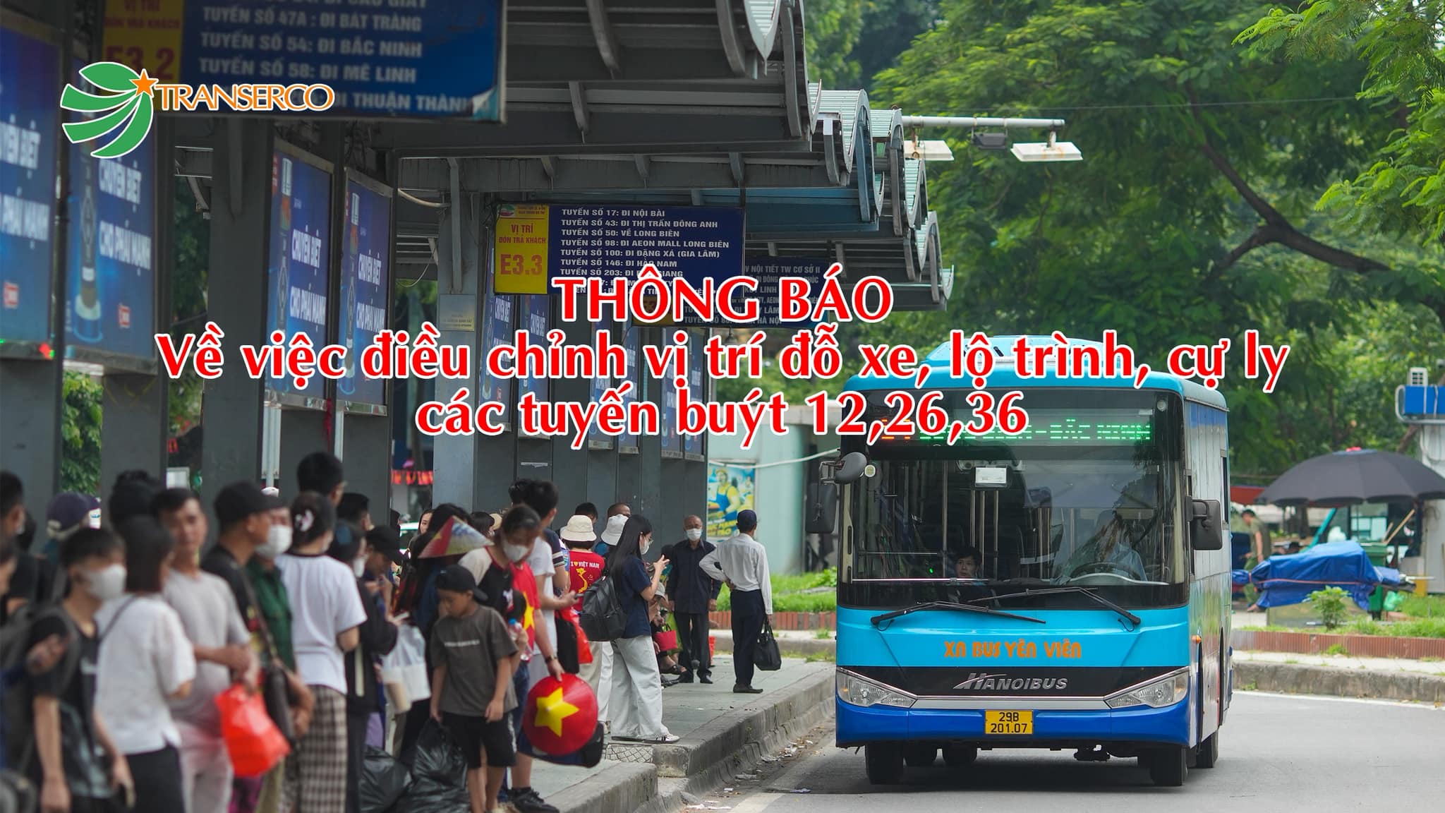Kể từ ngày 22/09/2025 - Điều chỉnh vị trí đỗ đầu B tuyến 26 từ đường Đỗ Xuân Hợp tới vị trí Quảng trường SVĐ Mỹ Đình. - Điều chỉnh lộ trình các tuyến 12,26,36 nhằm giảm thiểu các khu vực thường xuyên xảy ra ùn tắc giao thông.
