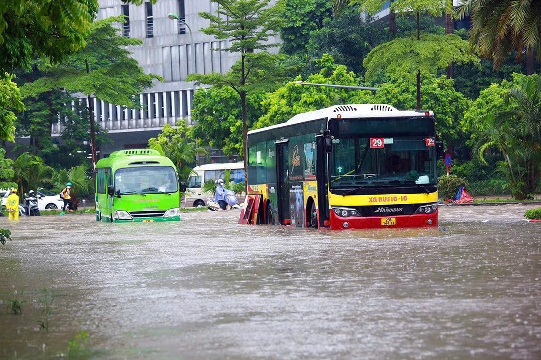 Do ảnh hưởng của bão MATMO trên địa bàn Hà Nội hiện đang xảy ra mưa lớn kéo dài gây ngập úng nghiêm trọng tại nhiều tuyến phố. Tình trạng ngập sâu tại một số khu vực đã khiến hoạt động vận hành xe buýt gặp nhiều khó khăn, cụ thể: