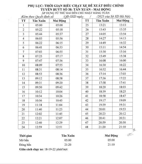 + Mở bến: Đầu A: 05:00 ( Giữ nguyên ) . Đầu B: 5:00 ( Giữ nguyên )