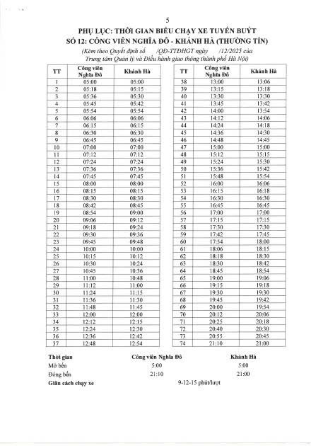 - chiều về: Khánh Hà (Thường Tín) - Đường mới xã Đại Áng - Quốc lộ 1 (rẽ phải theo tổ chức giao thông) - quay đầu tại điểm mở (Km 13 QL1A, xã Ngọc Hồi - đối diện nhà hàng Cây Si) - Quốc lộ 1 - cầu Ngọc Hồi - Quốc lộ 1 - Ngọc Hồi - Giải Phóng - Quảng trường Bến xe Giáp Bát - Giải Phóng - quay đầu tại điểm 649 Giải Phóng - Giải Phóng - Định Công - Trần Nguyên Đán - Trần Điền - Lê Trọng Tấn - Tôn Thất Tùng - Chùa Bộc - Thái Hà - huỳnh Thúc Kháng - Cầu Giấy - điểm trung chuyển cầu Giấy - Cầu Giấy - Bưởi - Nguyễn Khánh Toàn - Nguyễn Văn Huyên - quay đầu tại cổng Công viên Nghĩa Đô - Công viên Nghĩa Đô