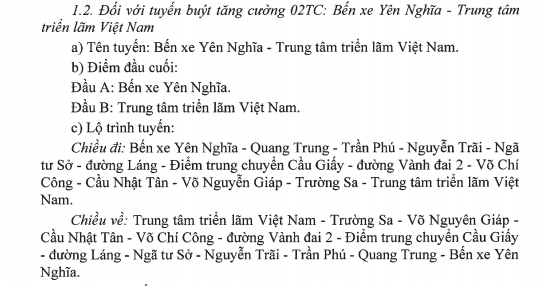 ["01 - Bến xe Gia Lâm - Bến xe Yên Nghĩa","02 - Bác Cổ - Bến xe Yên Nghĩa","02TC - Bến xe Yên Nghĩa - Trung tâm triển lãm Việt Nam","03A - Bến xe Giáp Bát - Bến xe Gia Lâm","03B - Bến xe Nước Ngầm - Giang Biên (Long Biên)","04 - Long Biên - Bệnh viện Nội tiết trung ương cơ sở 2","05 - MAI ĐỘNG - ĐẠI HỌC TÀI NGUYÊN VÀ MÔI TRƯỜNG HÀ NỘI","06A - Bến xe Giáp Bát - Cầu Giẽ","06B - Bến xe Giáp Bát - Hồng Vân","06C - Bến xe Giáp Bát - Phú Minh","06D - Bến xe Giáp Bát - Tân Dân","06E - Bến xe Giáp Bát - Phú Túc","07 - Cầu Giấy - Sân bay Nội Bài (điểm đỗ T1)","08A - Long Biên - Đông Mỹ","08ACT - Long Biên - Đông Mỹ","08B - Long Biên - Vạn Phúc","08BCT - Long Biên - Vạn Phúc","09A - Bờ Hồ - Cầu Giấy - Đại học Mỏ","09ACT - Trần Khánh Dư - Đại học Mỏ","09B - Bờ Hồ - Công viên Thống Nhất - Bến xe Mỹ Đình","09BCT - Trần Khánh Dư - Bến xe Mỹ Đình","100 - Long Biên - Đặng Xá (Gia Lâm)","101A - Bến xe Giáp Bát - Vân Đình","101B - Bến xe Giáp Bát - Đại Cường (Ứng Hòa)","102 - Bến xe Yên Nghĩa - Vân Đình","103A - Bến xe Mỹ Đình - Hương Sơn","103B - Bến xe Mỹ Đình - Hồng Quang - Hương Sơn","104 - Mỹ Đình - BX Nước Ngầm","105 - Đô Nghĩa - Cầu Giấy","106 - KĐT Mỗ Lao - TTTM Aeon Mall Long Biên","107 - Kim Mã - Làng văn hóa du lịch các dân tộc VN","108 - Bến xe Thường Tín - Minh Tân","108TC - Bến xe Thường Tín - Quang Lãng (Đại Xuyên)","109 - Bến xe Mỹ Đình - Sân bay Nội Bài (điểm đỗ xe buýt nhà ga T1)","11 - Công viên Thống Nhất - Học viện Nông Nghiệp VIệt Nam","110 - BX Sơn Tây - Minh Quang (Ba Vì)","111 - BX Sơn Tây - Bất Bạt","112 - Nam Thăng Long - Thạch Đà (Mê Linh)","113 - Bến xe Thường Tín - Bến đò Vườn Chuối","114 - Bến xe Yên Nghĩa - Miếu Môn","115 - Vân Đình - Đại Học Lâm Nghiệp","116 - Bến xe Yên Nghĩa - Yên Xuân","117 - Hòa Lạc - Nhổn","118 - BX Sơn Tây - Quốc lộ 32 - Bất Bạt","119 - Hòa Lạc - Bất Bạt (Ba Vì)","11CT - Công viên Thống Nhất - Học viện Nông Nghiệp VIệt Nam","12 - Công viên Nghĩa Đô - Khánh Hà (Thường Tín)","122 - Bến xe Gia Lâm - KCN Bắc Thăng Long","123 - Bến xe Yên Nghĩa - Hồng Dương (Thanh Oai)","124 - BX Yên Nghĩa - Chúc Sơn - Thị trấn Kim Bài","125 - Bến xe Thường Tín - Tế Tiêu","126 - BX Sơn Tây - Trung Hà (Ba Vì)","13 - CV nước Hồ Tây - Cổ Nhuế (HVCS)","142 - Nam Thăng Long - KĐT VinCom Long Biên","143 - Hào Nam (Ga Cát Linh) - Thị trấn Đông Anh","144 - Đại học Mỏ địa chất - Trần Khánh Dư","146 - Hào Nam - Phù Đổng","146CT - Hào Nam - Phù Đổng","15 - Bến xe Gia Lâm - Phố Nỉ","157 - Bến xe Mỹ Đình - Bến xe Sơn Tây","158 - Bến xe Yên Nghĩa - Khu đô thị Đặng Xá (Gia Lâm)","159 - Bệnh viện Bệnh nhiệt đới Trung ương CS 2 - KĐT Times City","16 - Bến xe Mỹ Đình - Bến xe Nước Ngầm","160 - Kim Lũ (Sóc Sơn) - Nam Thăng Long","161 - Cầu Giấy - Tam Hiệp","162 - Nhổn - Thọ An (Đan Phượng)","163 - Bến xe Yên Nghĩa - Nhổn","17 - Long Biên - Sân bay Nội Bài (điểm đỗ xe buýt nhà ga T1).","19 - Trần Khánh Dư - Học viện chính sách và phát triển","20A - Nhổn - Quốc lộ 32 - Bến xe Sơn Tây","20ATC - Nhổn - Quốc lộ 32 - Minh Châu","20B - Nhổn - Bến xe Sơn Tây","21A - Bến xe Giáp Bát - Bến xe Yên Nghĩa","21B - Duyên Thái - Bến xe Mỹ Đình","22A - Bến xe Gia Lâm - Khu đô thị Kiến Hưng","22B - Bến xe Giáp Bát - Đô Nghĩa (Hà Đông)","23 - Nguyễn Công Trứ - Nguyễn Công Trứ","24 - Long Biên - Ngã Tư Sở - Cầu Giấy","25 - BV Nhiệt đới TW Cơ sở 2 - Bến xe Giáp Bát","26 - Mai Động - SVĐ Quốc gia","27 - Bến xe Yên Nghĩa - Bến xe Nam Thăng Long","28 - BX Nước Ngầm - Đông Ngạc - Đại học Mỏ","29 - BX Giáp Bát - Tân Lập","30 - Khu đô thị Gamuda - Bến xe Mỹ Đình","30CT - Khu đô thị Gamuda - Bến xe Mỹ Đình","31 - Bách Khoa - Chèm (ĐH Mỏ)","32 - Bến xe Giáp Bát - Nhổn","32TC - BX Giáp Bát - Trung tâm triển lãm Việt Nam","33 - Cụm Công nghiệp Thanh Oai - Xuân Đỉnh","34 - Bến xe Mỹ Đình - Bến xe Gia Lâm","35A - Trần Khánh Dư - Nam Thăng Long","35B - Nam Thăng Long - Thanh Lâm","36 - Yên Phụ - Khu đô thị Linh Đàm","36CT - Yên Phụ - Khu đô thị Linh Đàm","37 - Bến xe Giáp Bát - Chương Mỹ","3737 - Bến xe Mỹ Đình - Bến xe Gia Lâm test","38 - Tân Xuân - Mai Động","39 - CÔNG VIÊN NGHĨA ĐÔ - MAI ĐỘNG","40 - Công viên Thống Nhất - Văn Lâm","40CT - Công viên Thống Nhất - Văn Lâm","41 - Nam Thăng Long - BX Giáp Bát","42 - Bến xe Giáp Bát - Trung Mầu (GIa Lâm)","43 - Kim Mã - Thị trấn Đông Anh","46 - Bến xe Mỹ Đình - Thị trấn Đông Anh","47A - LONG BIÊN - BÁT TRÀNG","47B - ĐẠI HỌC KINH TẾ QUỐC DÂN - KIÊU KỴ","48 - Bến xe Nước Ngầm - Chương Dương - Phúc Lợi (Chung cư Ruby City)","49 - Trần Khánh Dư - Nhổn","50 - Long Biên - Khu đô thị An Lạc (Hoài Đức)","51 - Bến Xe Gia Lâm - Trần Vỹ (Học viện Tư Pháp)","52 - Công viên Thống Nhất - Lệ Chi (Gia Lâm)","52CT - Công viên Thống Nhất - Lệ Chi (Gia Lâm)","53A - Hoàng Quốc Việt - Đông Anh","53B - Bến xe Mỹ Đình - Kim Hoa (Mê Linh)","54 - Long Biên - Bắc Ninh","55 - TTTM Aeon Mall Long Biên - Cầu Giấy","56A - Mỹ Đình - Núi Đôi","56B - Học viện Phật Giáo VN - Xuân Giang - Bắc Phú - Học viện Phật Giáo VN","57 - Nam Thăng Long - Khu công nghiệp Phú Nghĩa","58 - Yên Phụ - Thạch Đà 
