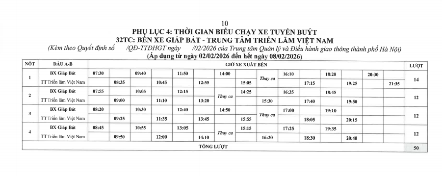 THÔNG BÁO: về việc phê duyệt điều chỉnh tạm thời dịch vụ các tuyến buýt số 02, 32