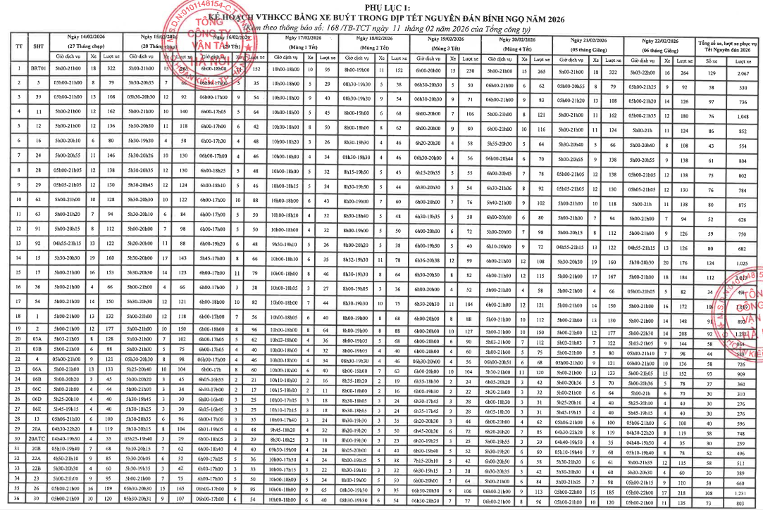 THÔNG BÁO Về kế hoạch VTHKCC bằng xe buýt phục vụ Tết Nguyên đán Bính Ngọ 2026