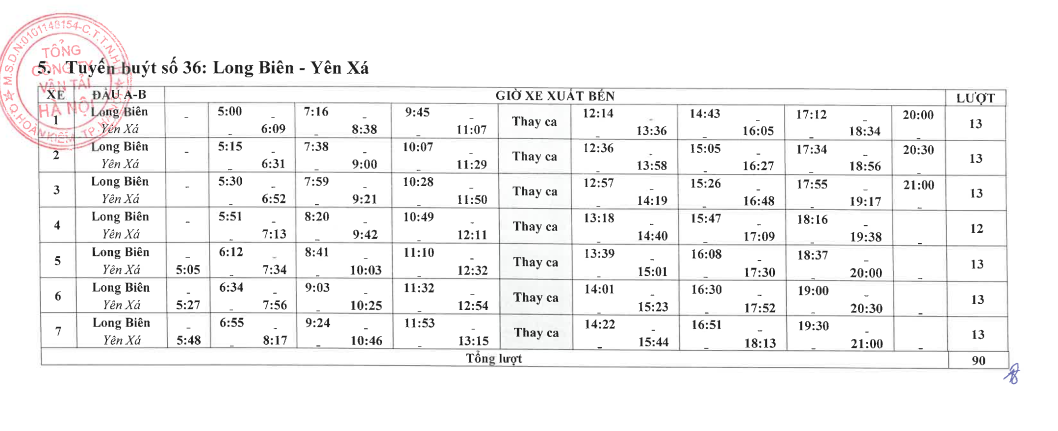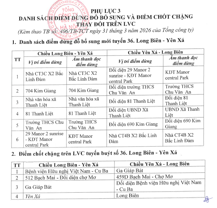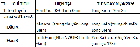 Điều chỉnh lộ trình, điểm đầu cuối tuyến buýt số 36 từ Khu đô thị Linh Đàm về Yên Xá nhằm tăng cường kết nối, đáp ứng tốt hơn nhu cầu đi lại của hành khách, cụ thể